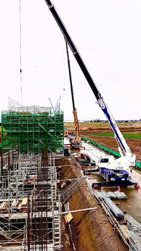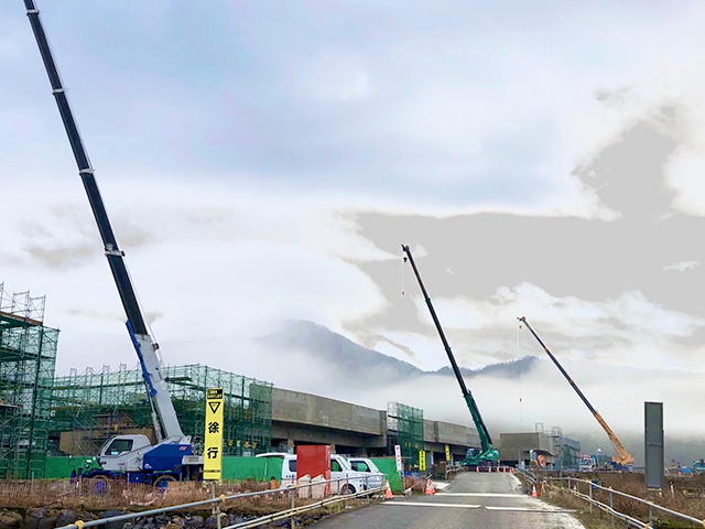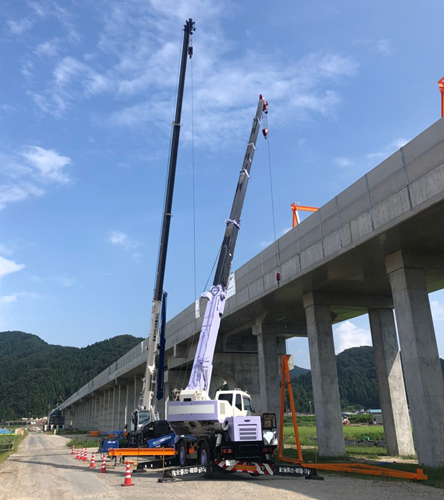 福井県越前市の北陸新幹線建設工事においてクレーン作業を行いました。