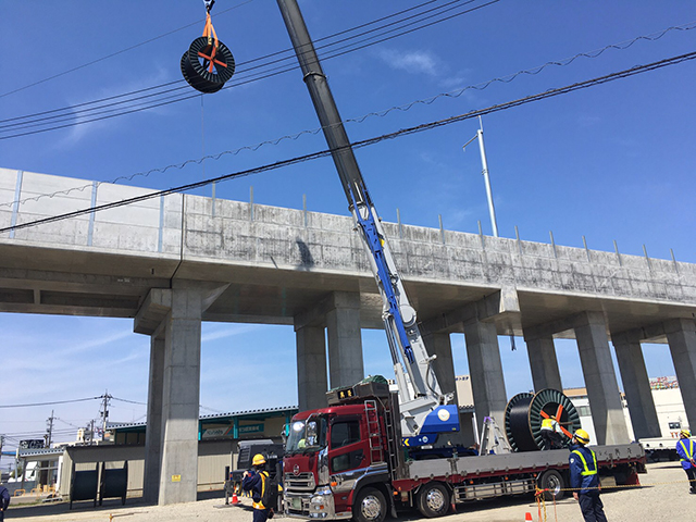福井県福井市にて北陸新幹線建設工事の信号設備付設工事・ケーブル運搬を行いました。