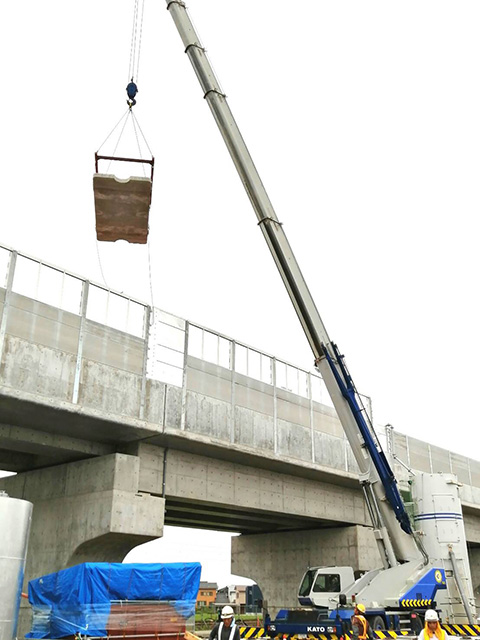石川県小松市の北陸新幹線建設工事においてクレーン作業を行いました。