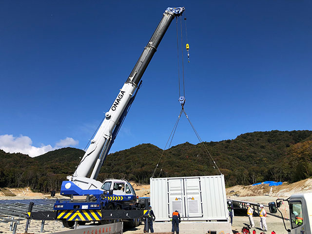 兵庫県神戸市北区山田町でメガソーラー中間変電所の機器設置一式請負工事を行いました。
