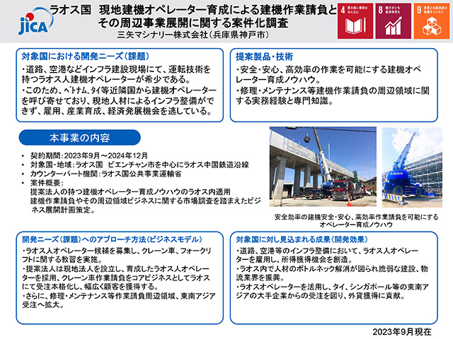 案件名:ラオス国現地建機オペレーター育成を梃子にした建機作業請負とその周辺に関する案件化調査