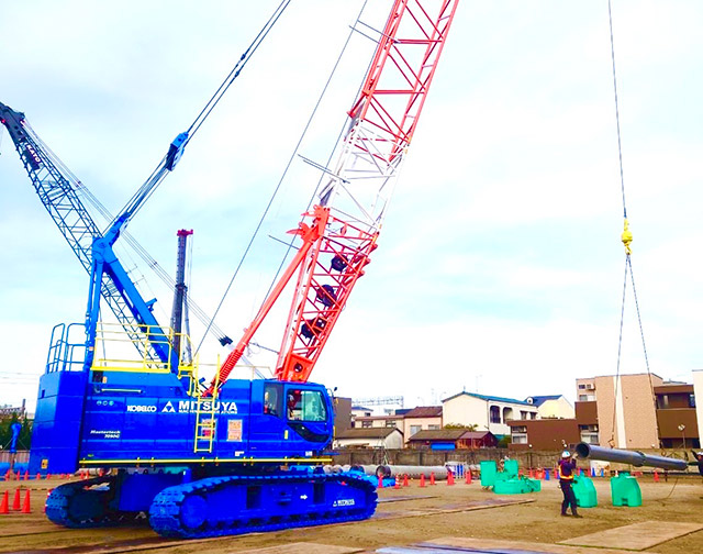 コベルコ製クローラークレーン90tを新機種導入予定です。